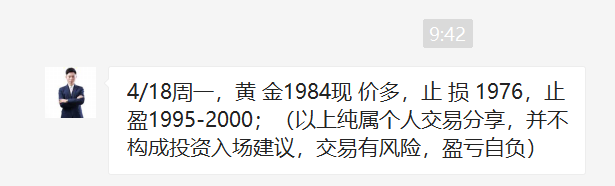 黄金强势的上涨走势,回落就是干多的机会,早盘回踩1984,王杨果断提示干多,如期拉升!开门红!顺势轻飘飘,逆势乱糟糟,干多我们是认真的! 黄金自上周开始我们便一路提示干多看涨,每次回调都果断干多!本周涨势延续,早盘行情已经突破阶段新高,方向已经指明,我们只需在回调的时候果断入场。当前黄金涨势
