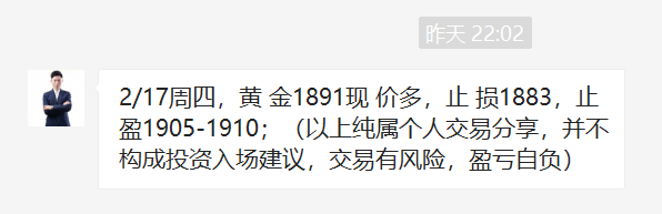 黄金早盘已经提示高位干空,先是1901空单下跌获利,反弹后在1897再次干空,如期大跌1890附近获利!日内干空已经两连胜到手,紧跟市场节奏,轻松拿捏利润! 当前黄金冲高回落,开启调整走势!而且最近关于乌克兰的会谈较多,避险情绪降温!黄金至少要开启一波调整走势!早盘上涨不延续,多头暂时告一段落,接下来