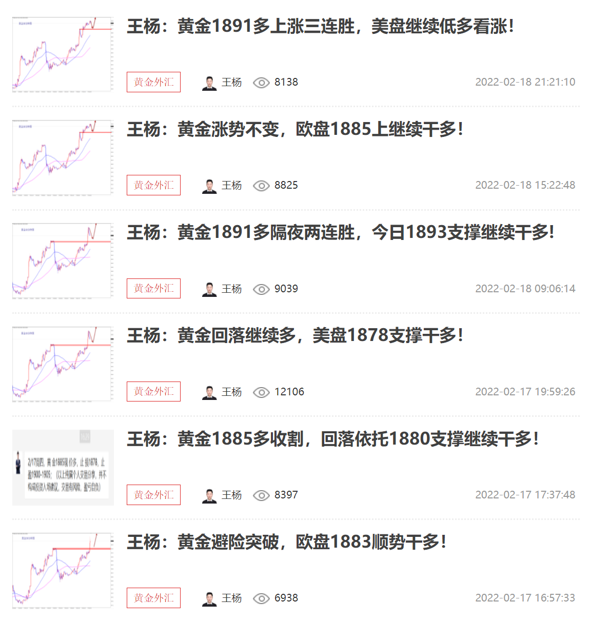 王杨:资深黄金分析师,多年黄金分析及实盘操作经验,曾独掌千万,纵横于市场;对国际基本面、技术盘面解读有独特的思维理念和操作模式,曾对市场巨鳄的思路做过深度的研究;金融市场瞬息万变、灵活变动、运筹帷幄、防微杜渐、如履薄冰以一颗谦卑的心去纵横市场方可百战不殆。