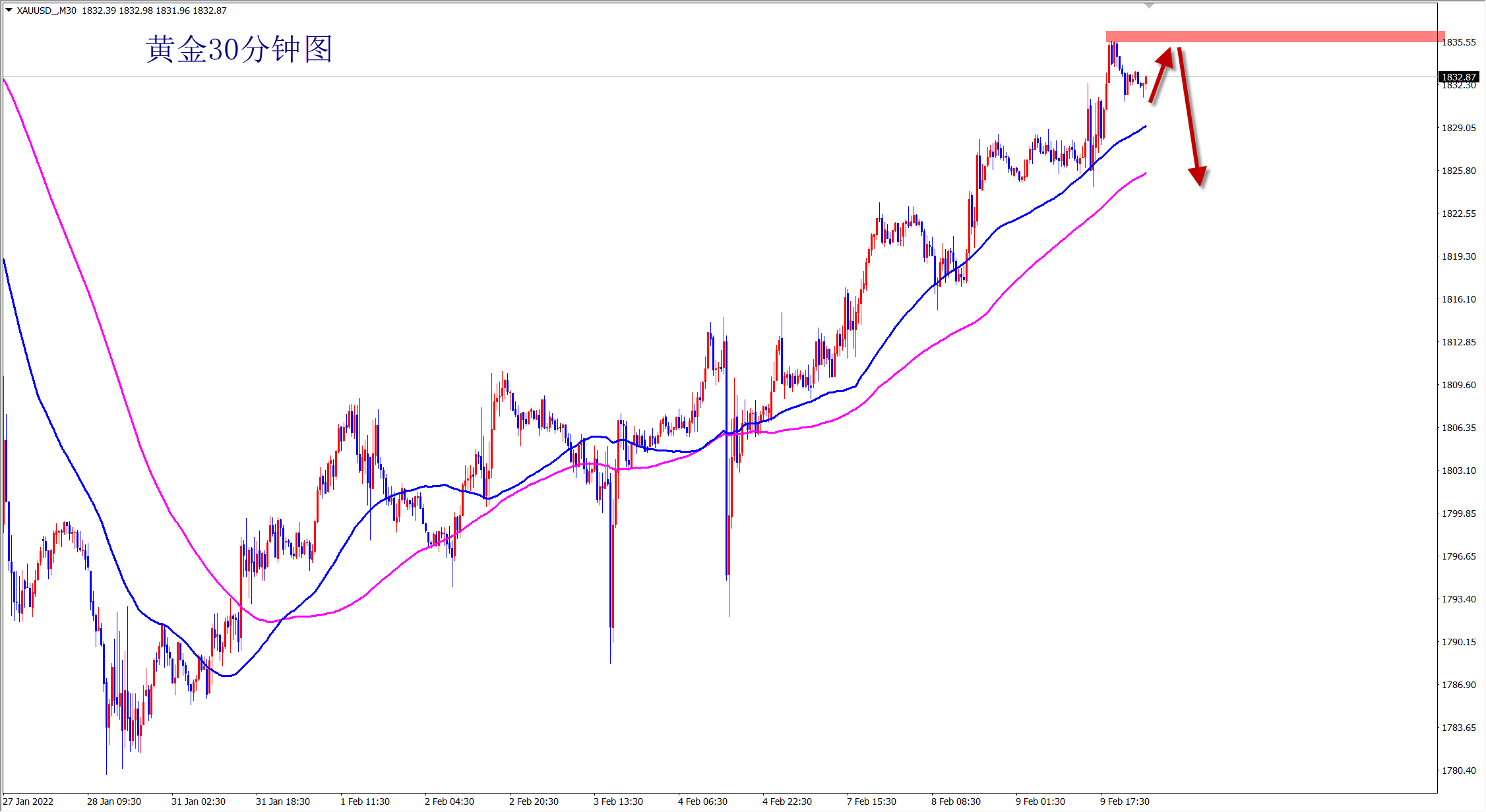 黄金上涨抵达我们所强调的1835目标区域,并且遇阻,上涨暂时告一段落,将会开启调整,今日早盘1835位置直接干空看跌! 黄金此前一路震荡上行,而且亚欧盘都是小幅震荡调整的走势,然后美盘爆发上涨,尤其是凌晨时段,单边上涨!但是这种情况现在已经开始改变,今日守高点干空看跌,下方关注1824的支撑,破位后看跌至1
