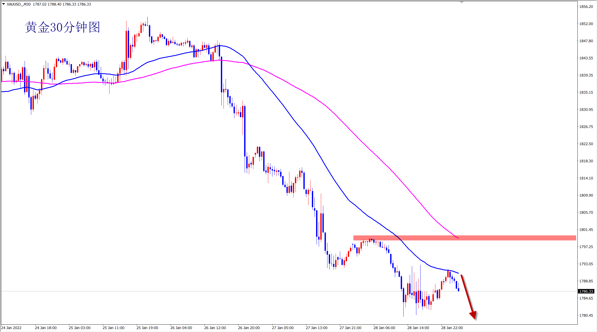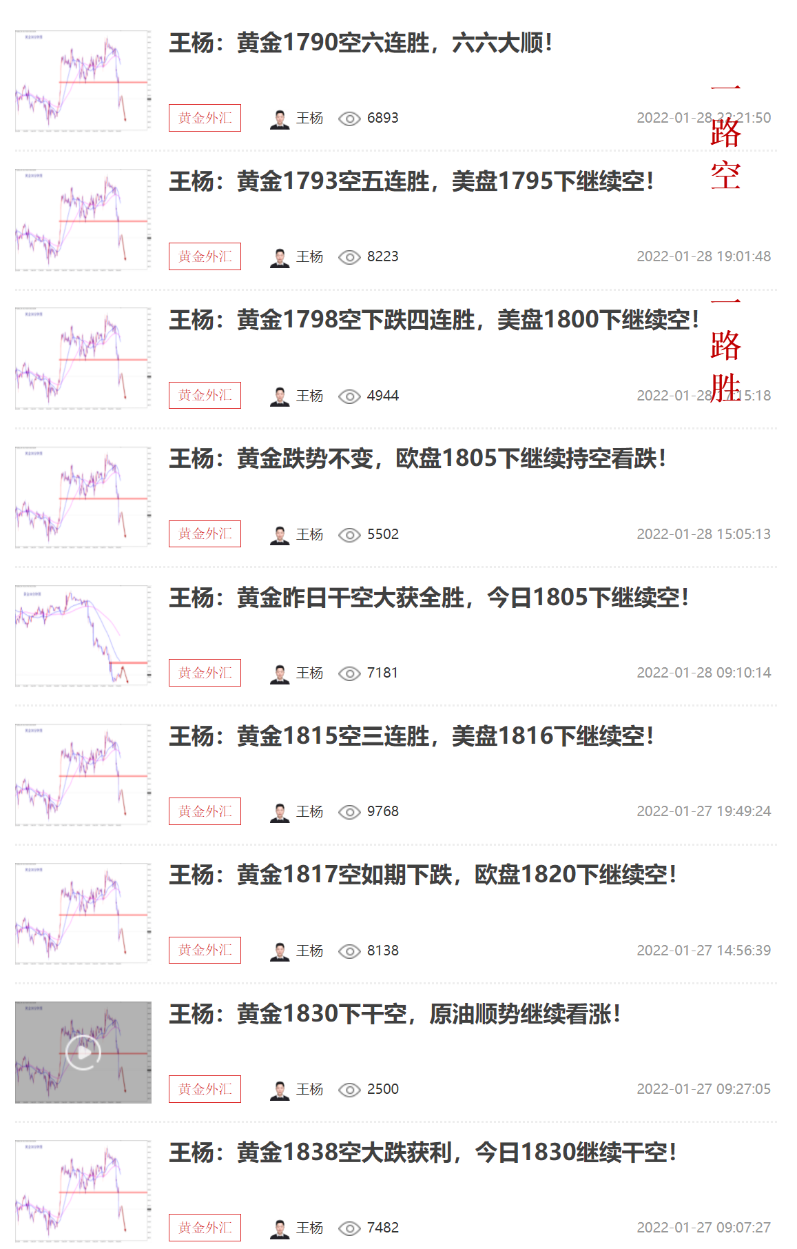 黄金本周在利率决议鹰派加息的打压下,从最高点一路下行,并跌破多个支撑关口,直达1780位置!我们自1838位置转跌干空开始,一路跟随,直接拿下空单六连胜的完美战绩!为即将结束的牛年画上一个完美的句号,全新的姿态迎接虎年的到来,关注王杨,我们依旧会续写传奇! 黄金当前明显的下跌趋势,这是毫无疑问的,