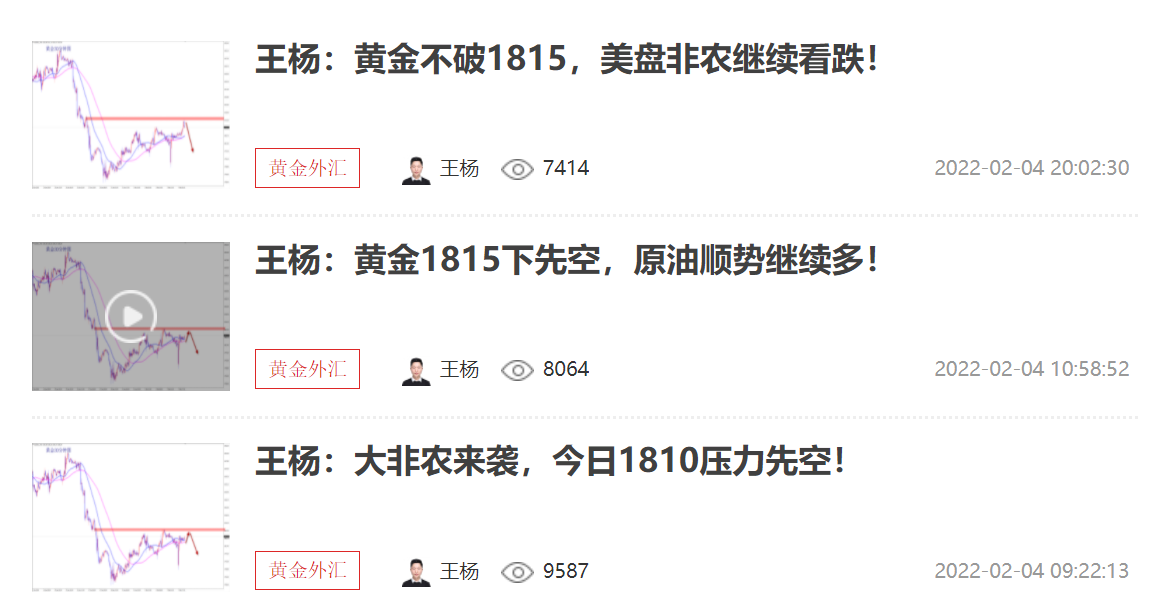 王杨:资深黄金分析师,多年黄金分析及实盘操作经验,曾独掌千万,纵横于市场;对国际基本面、技术盘面解读有独特的思维理念和操作模式,曾对市场巨鳄的思路做过深度的研究;金融市场瞬息万变、灵活变动、运筹帷幄、防微杜渐、如履薄冰以一颗谦卑的心去纵横市场方可百战不殆。