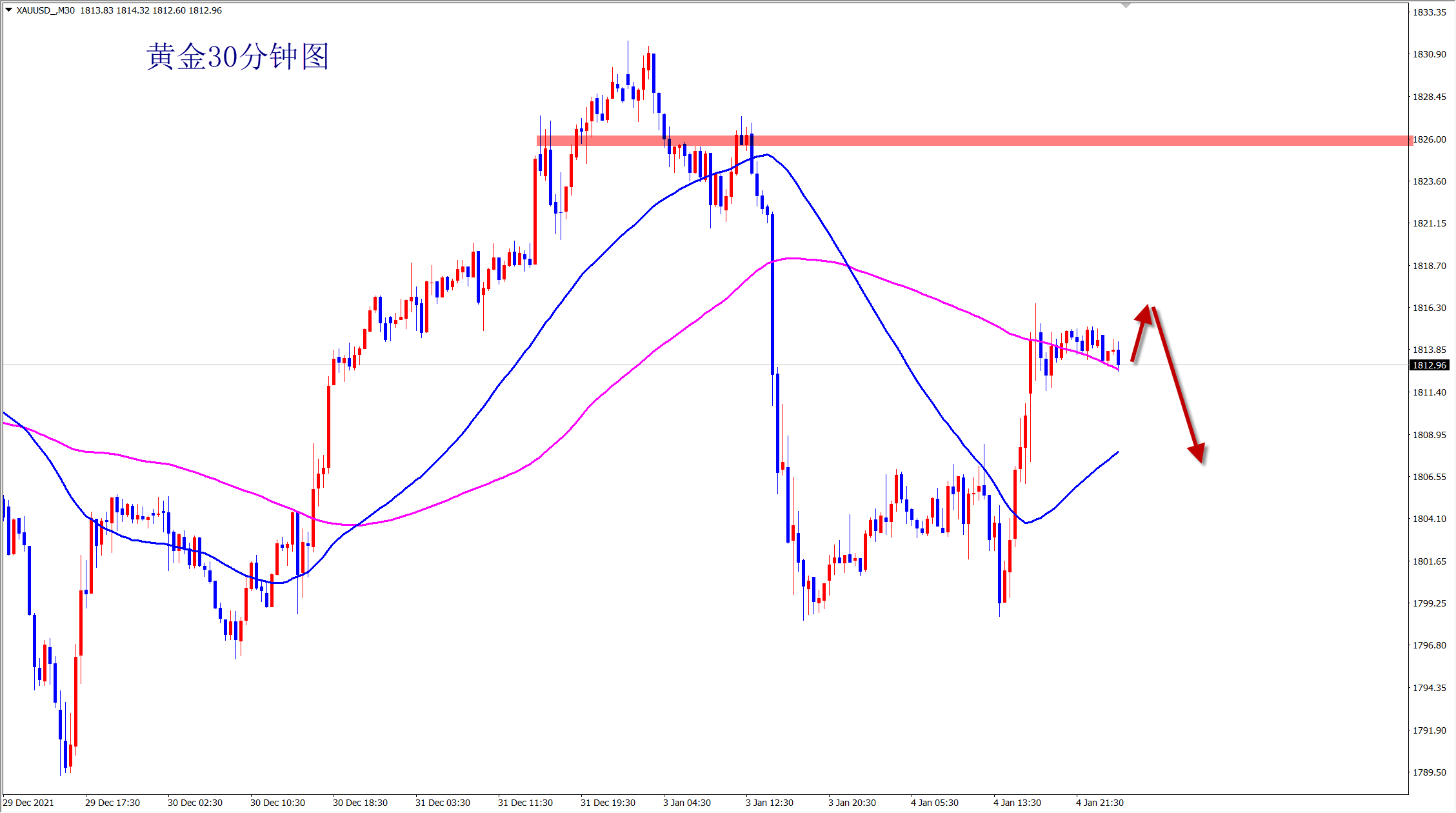 黄金早盘横盘震荡,没有延续昨日的强势上涨,强不再强必转弱!宽幅震荡走势,欧盘遇阻干空看跌,依托1825压力干空! 黄金整体上是震荡行情,没有明显的趋势,涨跌都不延续,而压力支撑位置就是我们操作的关键依据!当前行情反弹,但是遇阻上方1820一线的阻力,不能突破的情况下,必然会再次回落! 欧盘遇阻压力还