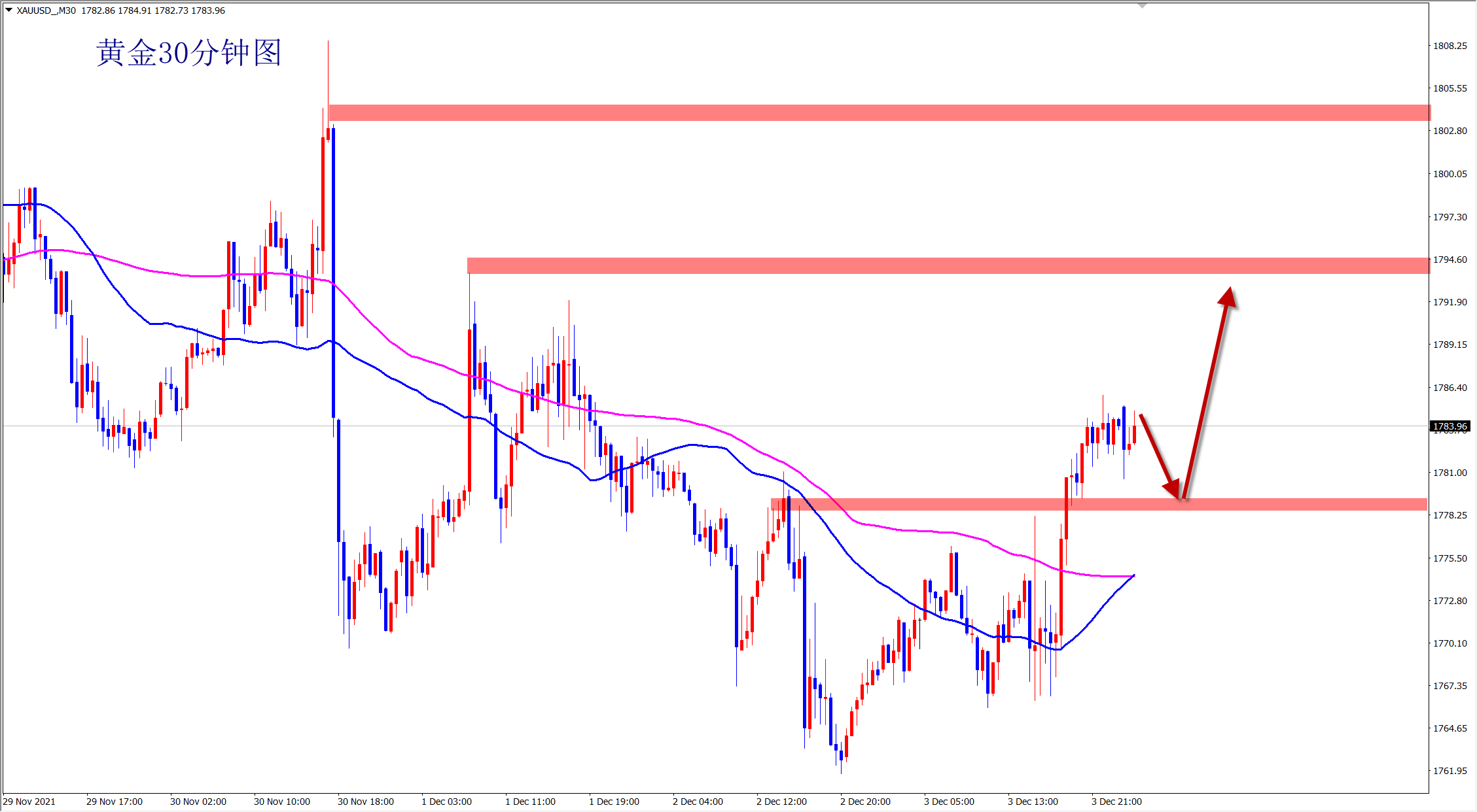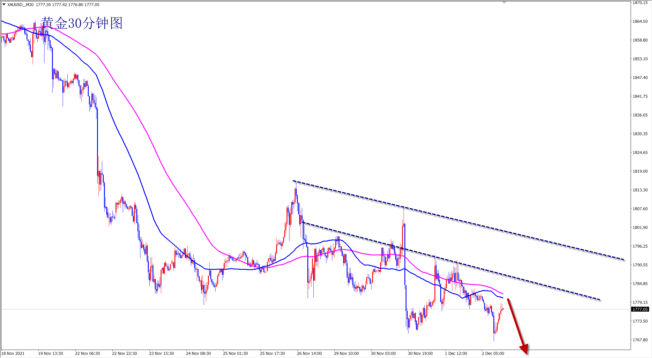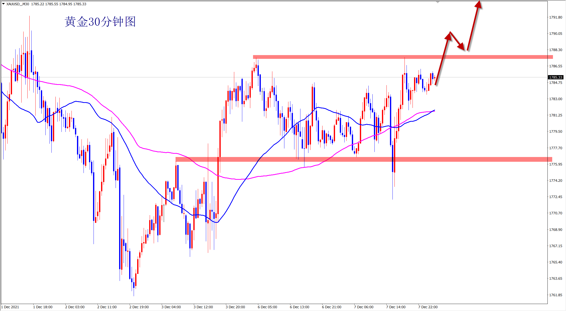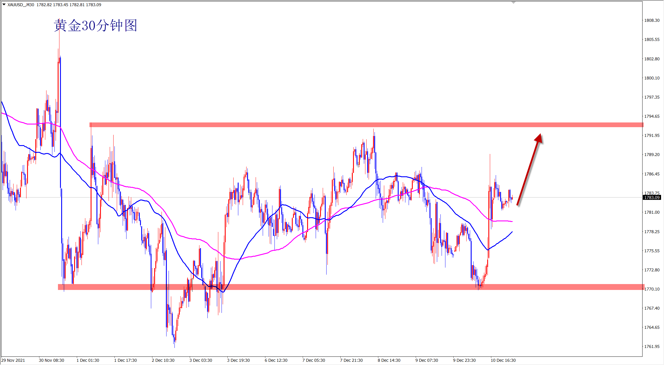黄金昨日震荡回调,但是没有真正跌破1772的支撑,还是反弹上涨走势不变,今日继续维持低多看涨思路,早盘依托1772支撑直接干多! 黄金当前属于反弹走势,短线震荡,下方1772一线的支撑明显,此位置上黄金还是看涨干多,早盘依托此支撑位置继续干多!不破不立,破位翻转!黄金看似弱势回调,但是并没有跌破关键支撑,