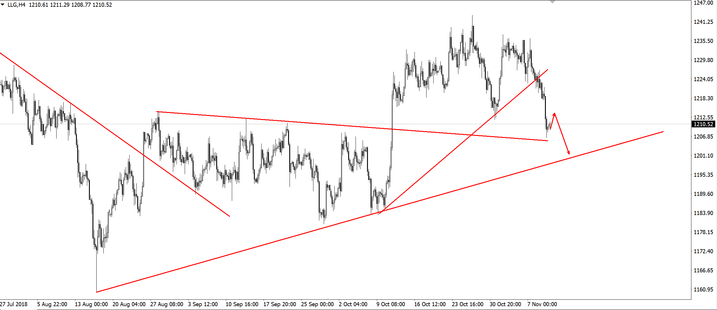 上周五,金价大跌向下,刷新了新的低点,此次下调的力度比较大,受到美国中期选举以及美元走势的影响。