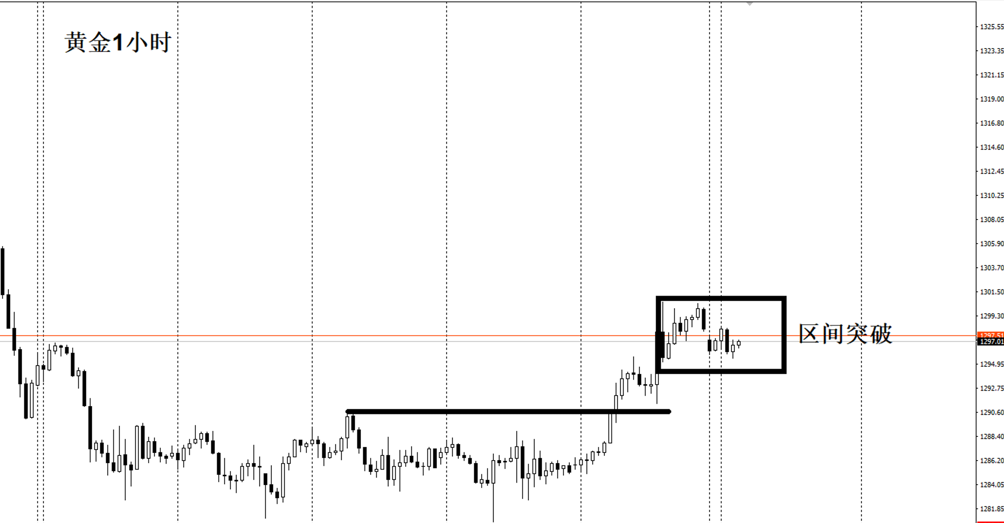 另外,像地缘政治风险,经济风险,以及非农数据等相关的重磅消息,对市场的影响似乎变得没以前那么强烈,上周五打破1290压力位置之后的反弹,到达1300附近,然而1290的位置破位一直是我们准备追多的思路,最终在1291~1292做多,于1300完美获利离场。