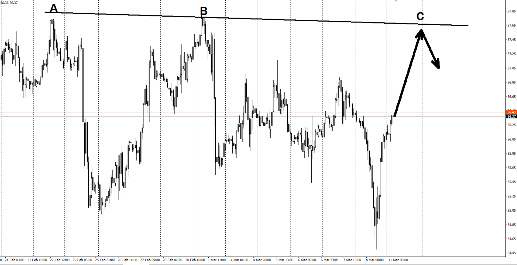 2:原油早间56.3,直接做多,止损55.9,目标57~57.3,上方首次见57.5反手做空,止损58,目标56.5。