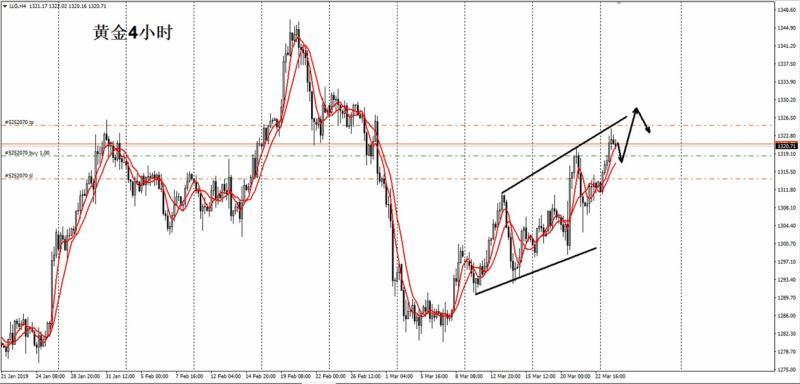 如图,还是4小时的走势,今天画的趋势线,刚好触及到此位置,之后走高位横盘修正,关键的支撑位置则是在前期顶底转换的位置1320,以此作为支撑点,不过,位置有点高,不建议去追单操作,或者仓位过重,而是把仓位放至原来仓位的1/2即可,如若突破了1324回撤再做,会相对比较安全。