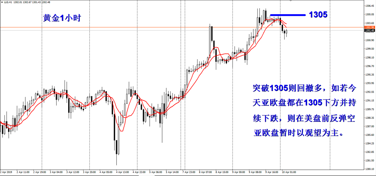 1:黄金暂时在1305-1297的区间内震荡,在此区间高抛低吸,破位后顺势跟进。