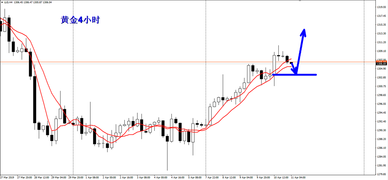 4小时,目前价格的回撤支撑集中在昨晚拉升大阳线底部,在1304-1302的范围之内,这个位置也是日线级别5日均线的位置,回落之后在此位置入场做多即可,持续性的反弹没有结束,最起码日线上没有改变,暂时性还是继续保持做多即可,尤其是在短线方面。