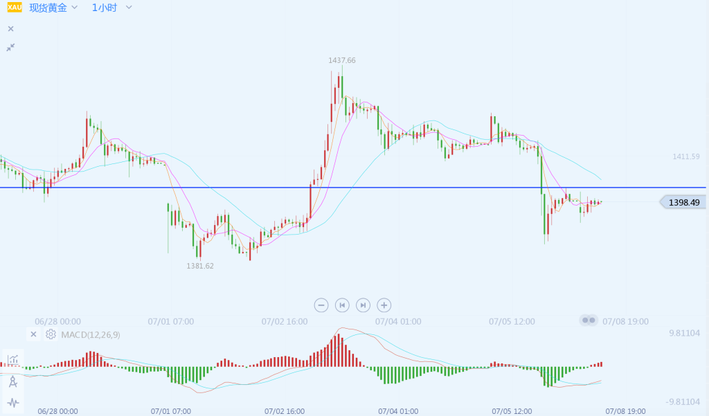 黄金今天在1398.5-1399早间现价空,损在1404,目标1390-1388,如若突破1403-04则回撤1402-03多,损在1397,目标看至1410-1415即可。