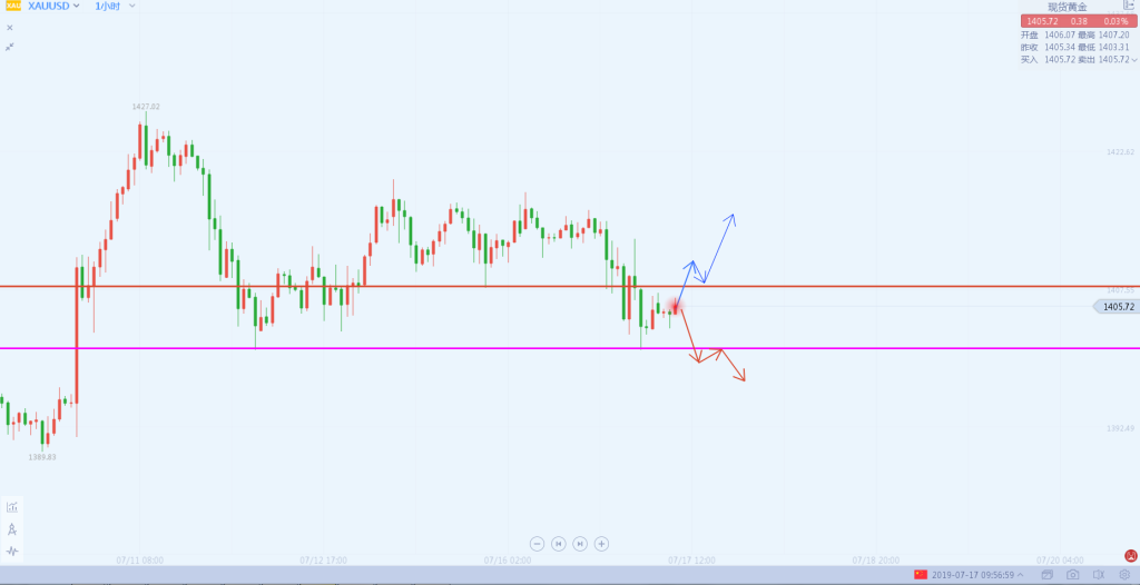 1:黄金早间1406轻仓先空损1409目标1400