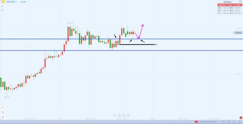 1: 黄金1499小级别顶底位置多,损在1494起涨点,目标看1510前期高点。