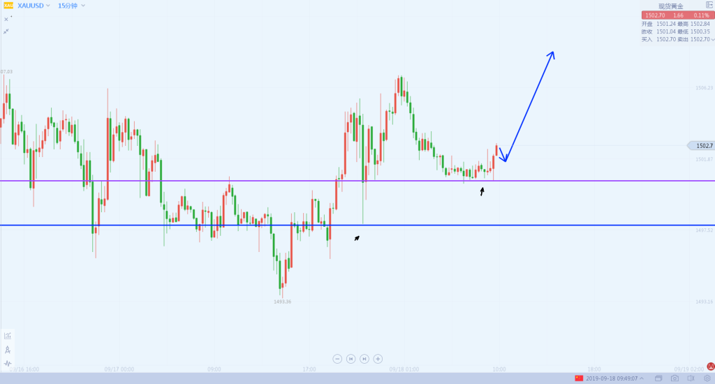 1:黄金1501做多,防守在1496,目标上看1515。
