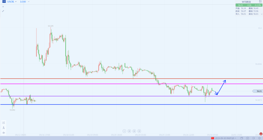 2:原油回撤55.4做多,损在54.8,目标看向57.4。