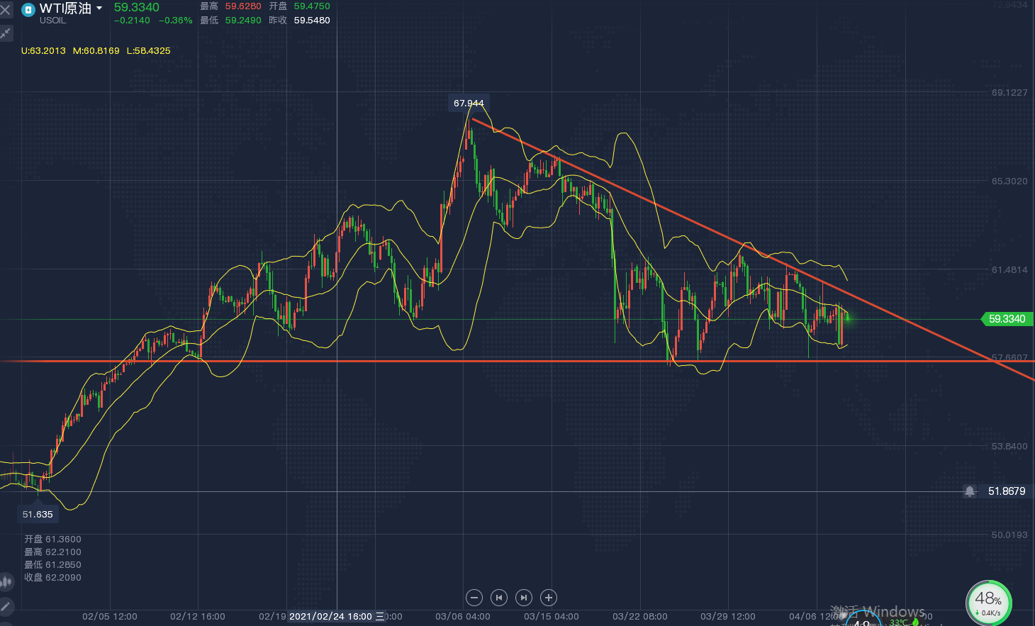 原油:反弹59.8做空,止损60.5,目标58.2。