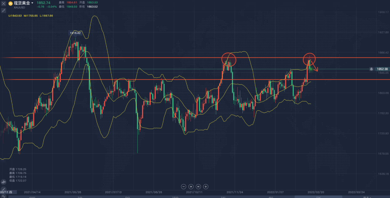 昨日黄金价格冲高后大幅回落近,因俄罗斯希望能以外交手段化解与美国及其盟友之间的紧张形势,并宣布撤回集结在乌克兰边境附近的部分士兵,市场避险情绪有所缓和,推动股市看涨情绪,美三大股指均强劲上涨。美联储官员仍然就在3月的会议上开始加息的力度问题争论不休,布拉德周一重申主张美联储加快加息步伐,其他美联储官员不太愿意承诺加息50个基点,甚至担心这可能会带来麻烦。总的来看,金价目前上涨势头暂歇,且仍然受到地缘政治影响波动较大,短线走势较难判断,不过俄乌冲突得到进一步缓和,对金价后市走势不利。晚间有美联储货币政策会议纪要公布,需重点关注。