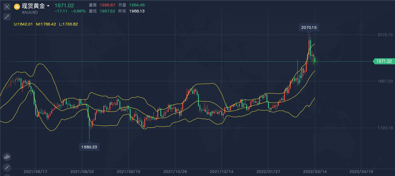 黄金近日整体震荡走弱,一方面市场对俄乌局势的担忧情绪降温,关注进一步的双方会谈,另一方面,本周将迎来美联储利率决议,市场普遍预计将会启动加息周期,令金价承压;技术面信号也偏向空头,短线金价或试探1950关口附近支撑。总体而言,通胀依然居高不下,全球政治、金融形势依然动荡,这在历史上一直是黄金的利好因素,然而本周三的加息已经势在必行,政局上只要出现稍微的缓和迹象,那么黄金的短线回落就是大概率事件了。