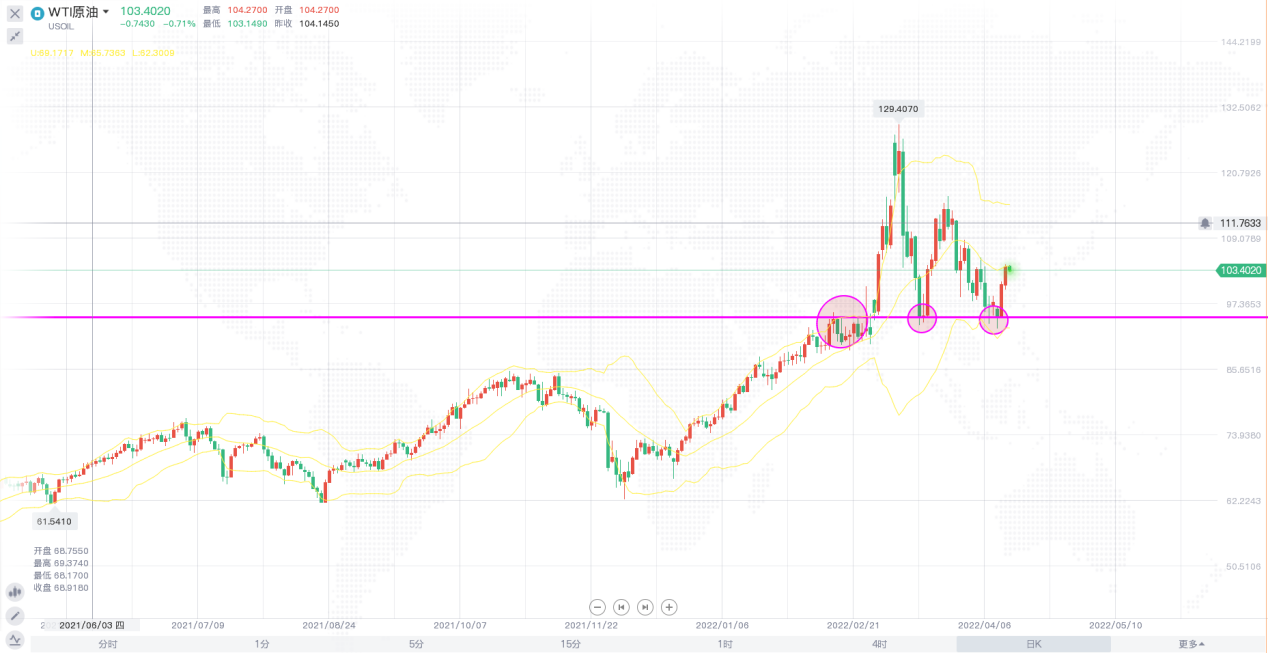 整体来看,地缘政治仍将对原油市场带来风险因素,由于西方国家对俄的制裁不断加码,制裁将会减少俄的能源输出,对供应担忧的情绪会对油价形成支撑作用。原油消费国及国际能源组织或继续联手出台抑制油价的政策,如持续释放原油战略储备等,但由于释放的数量有限,因此对于平抑油价的作用也十分有限,同时主要石油交易商减少购买俄原油,增加了供应担忧,油价势头强劲;美股上涨,也提振了油价,短线油价有望继续走高,去试探109一线。明日因复活节全天休市,临近周末,需警惕周末地缘方面风险。