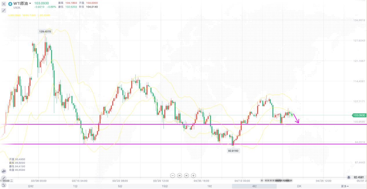 整体来看,美联储主席鲍威尔彻底转鹰,称5月会议加息50个基点是选项之一,美元从一周低点反弹,令金价短线下行风险仍存;但美方宣布再向乌方提供8亿美元安全援助,令地缘局势担忧挥之不去,这可能会限制金价的下行空间。短线价格有望继续延续回落,再回之前的震荡区间,日内关注下方1920一线的支撑情况。