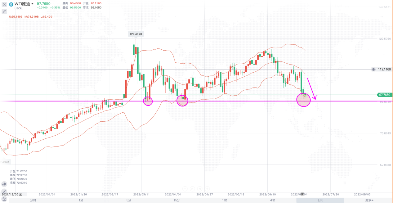 目前来看,原油市场的基本面供需情况近期并未出现大幅的波动,多空博弈仍在进行,但经济衰退的宏观局势对大宗商品的影响已不容小觑,同时美方及其盟国的限价政策更是对原油价格施加压力,加之猴痘疫情蔓延,经济衰退担忧加剧,油价短期还将维持看空的情绪,晚间有EIA数据公布,若数据显示库存增加,油价或再次下探94美元附近支撑。