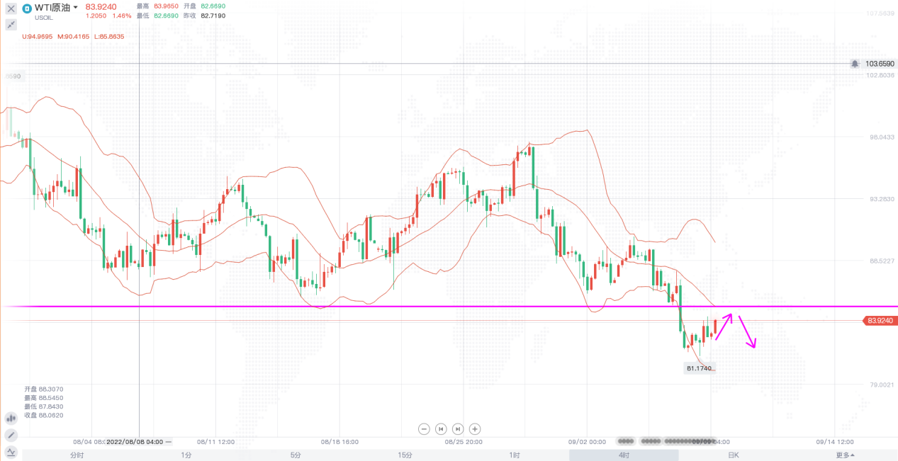 原油:反弹84.2附近做空,止损85.2,目标81.5