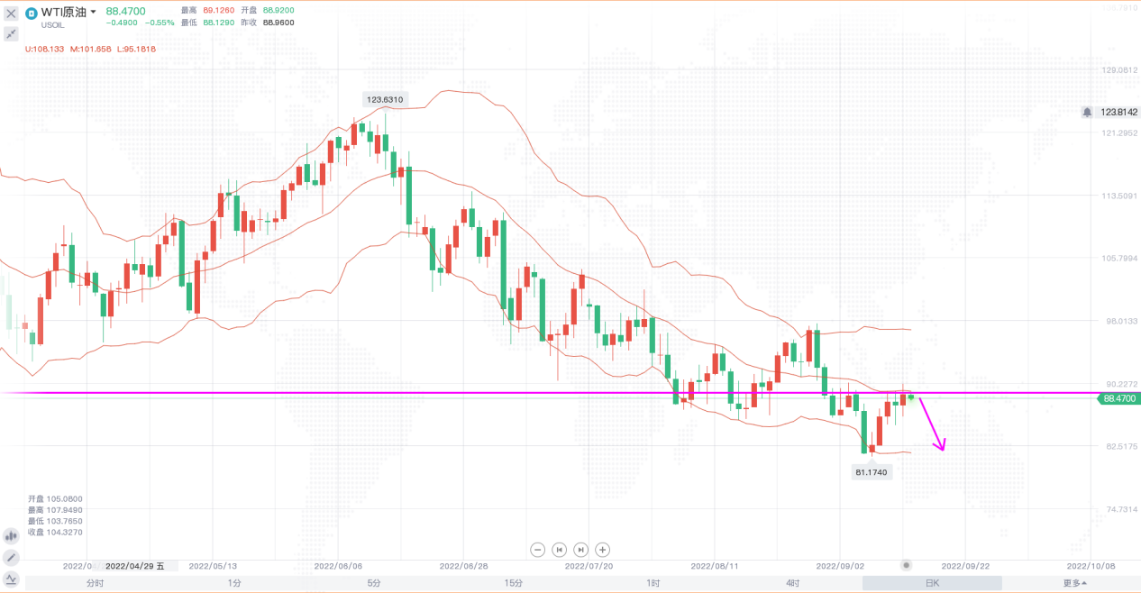 昨日黄金价格震荡下行,延续了跌势,美联储在达成2%的通胀目标之前,还有很长的路要走。市场已经完全消化在下周利率会议结束时至少加息75个基点的预期,认为超大规模加息100个基点的可能性是22%,未来进一步加息的幅度和持续时间让许多人担忧美联储紧缩阶段的滞后效应。为了让实际通胀与未来预期趋于一致,美联储别无选择,哪怕不惜抑制经济增长,这个过程会导致更多人失业。但即便存在避险环境,加息会提升黄金的持有成本,上方阻力重重。