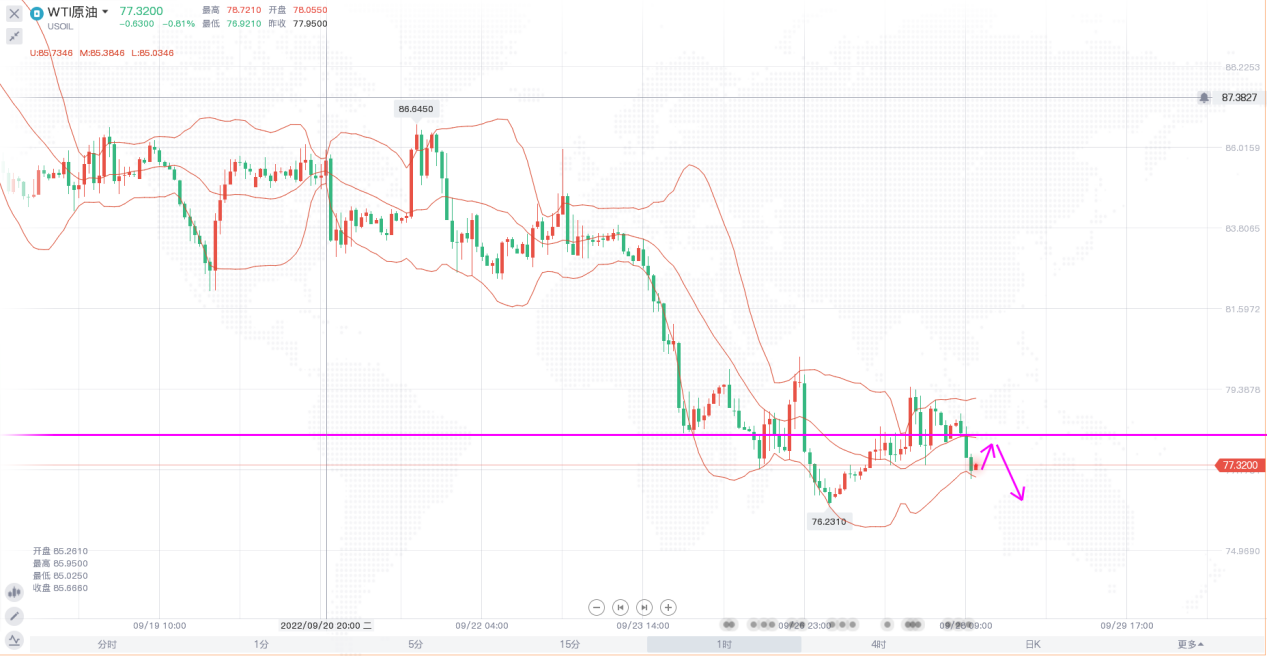 原油:反弹78附近做空,止损79,目标76,破位持有。