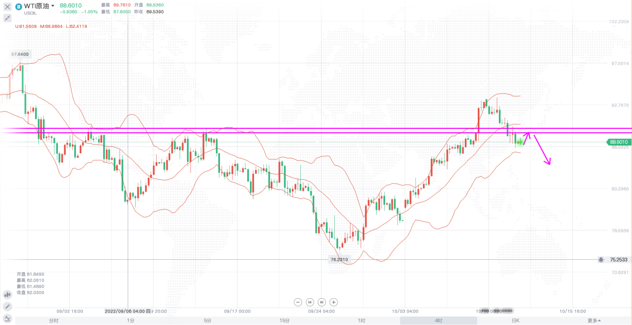 原油:反弹89.5附近做空,止损90.5,目标86。