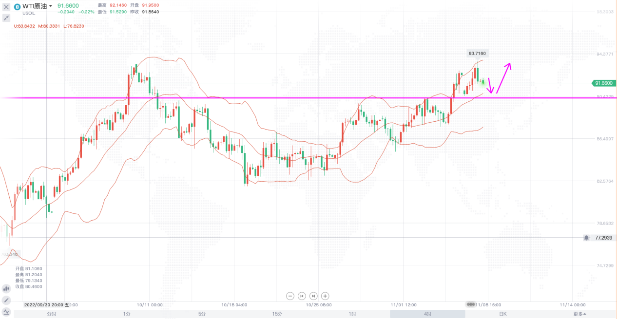 原油:回调91-91.2附近做多,止损90.4,目标93,破位持有。
