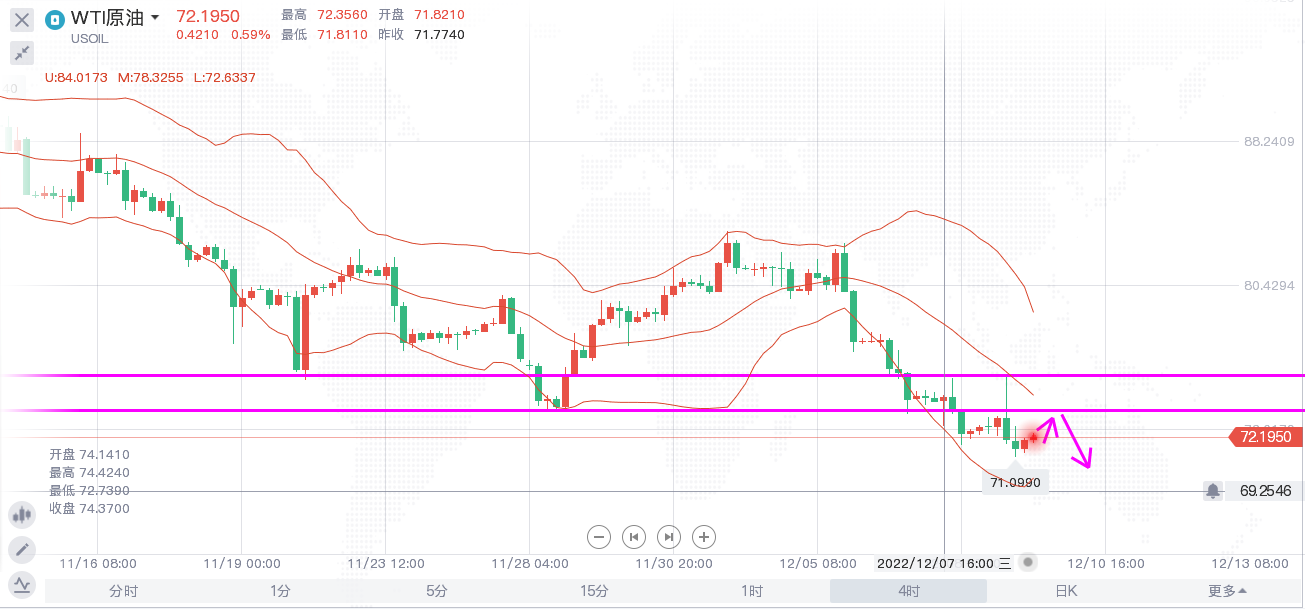 原油:反弹72.8-73区域做空,止损73.8,目标71。