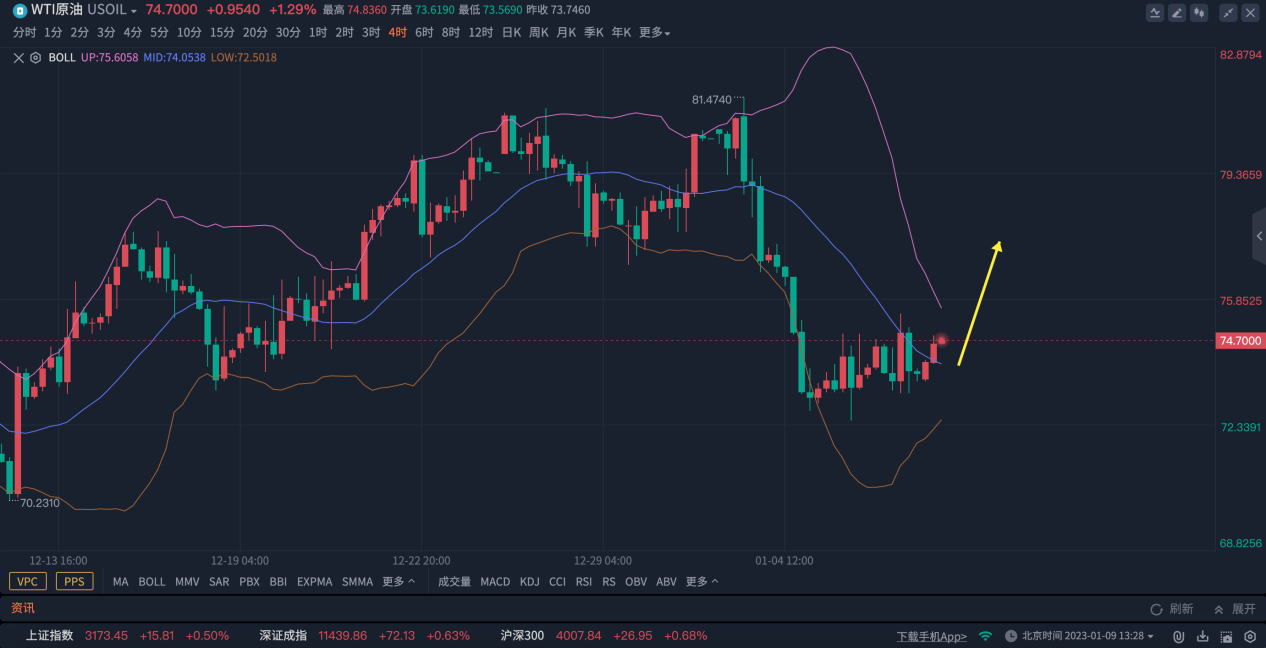 2:原油回落还是靠近73-72.8的区域多,止损72.00,目标75.6-76.8,突破74.8可选择上移止损或加仓多。