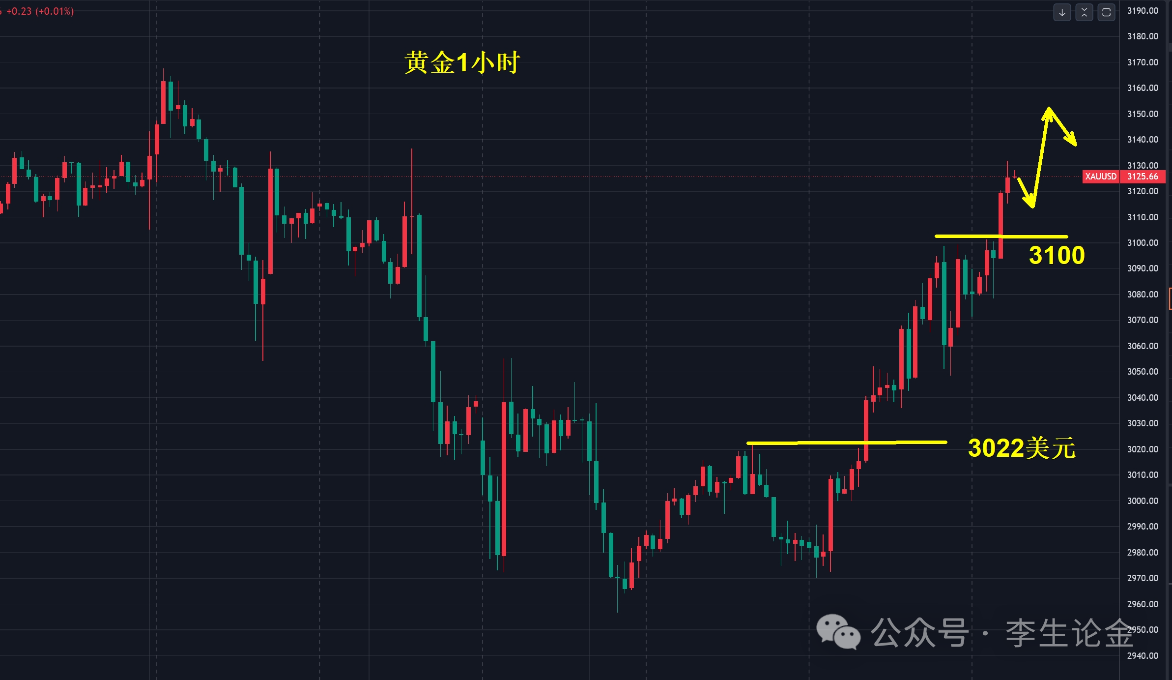 周三,黄金早盘强势突破3022美元,这个位置的突破就宣告短期调整行情结束,下跌行情的判断底部不是猜测低点,而是看最后一次下跌前高点位置是否突破,突破后回踩确认不创新低,预示着下跌行情结束,而不是看最低点,最低点没有人知道,底部是走出来的,不是猜出来的!