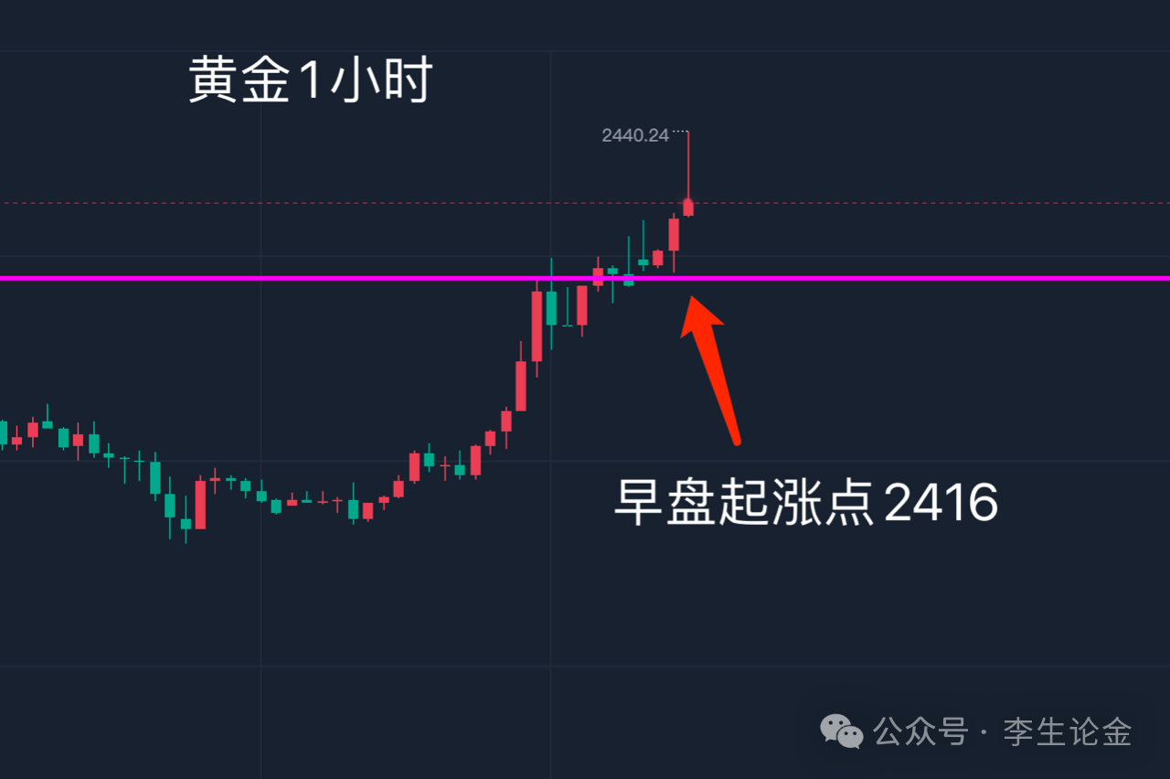 当你身处历史当中的时候,就无法看清历史的高低点,比如如今的黄金。 上周五,黄金重新回归到2400美元,谈不上意外,这是预料中的事,今天早上继续加速前进,目前已经到了2440美元了,超过了4月12日人类历史的高点。 周末,线下黄金零售店,开始纷纷上调黄金饰品零售价,目前价格已经超过740-750元/克