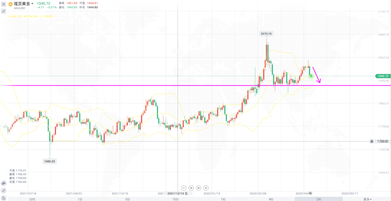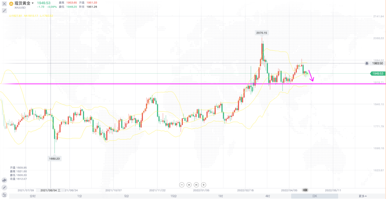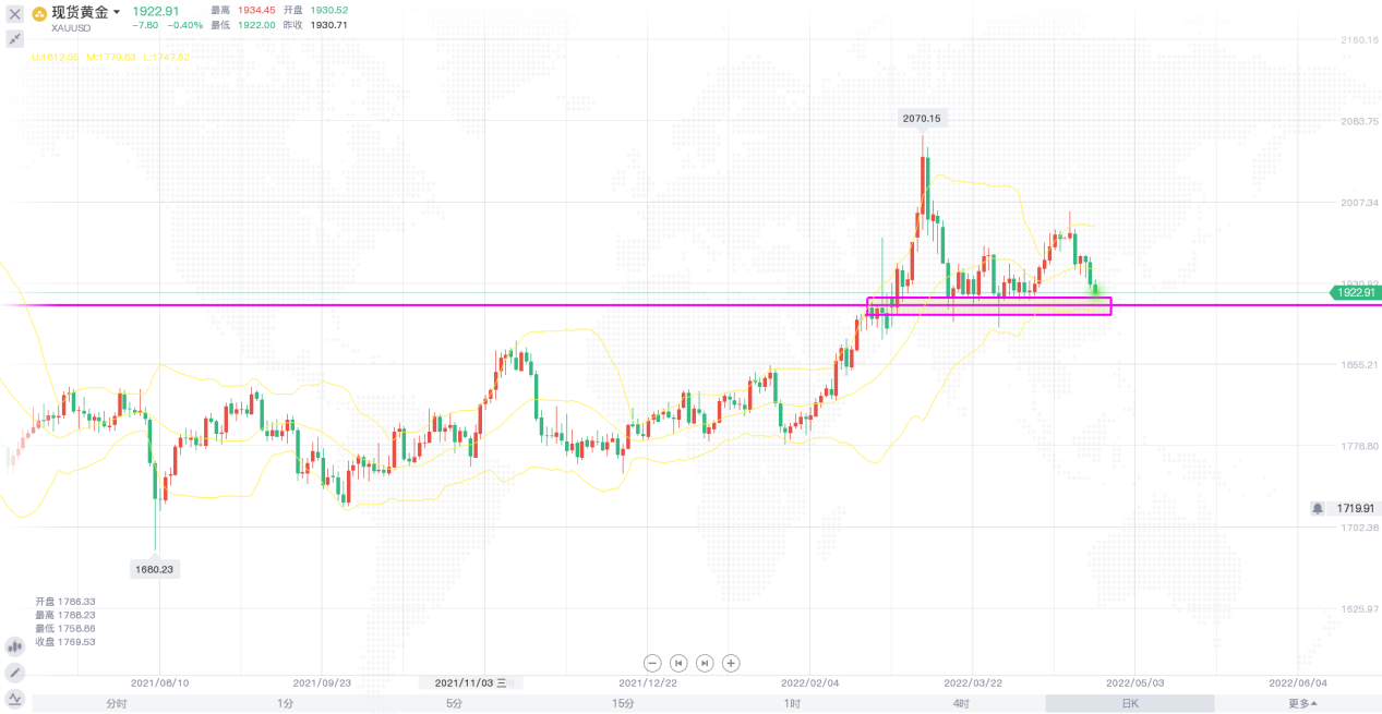 昨日,美元指数两年多来首次上涨突破101,十年期美债收益率触及2.93%,为2018年12月以来最高,受积极的财报提振,美三大股指创逾一个月最佳单日表现。美元走强和美债收益率攀升令黄金价格承压,价格一度重挫1.75%,最近触及1944附近。 美圣路易斯联储主席布拉德周一重申,他主张在年底前将利率上调至3.5%,以控制通