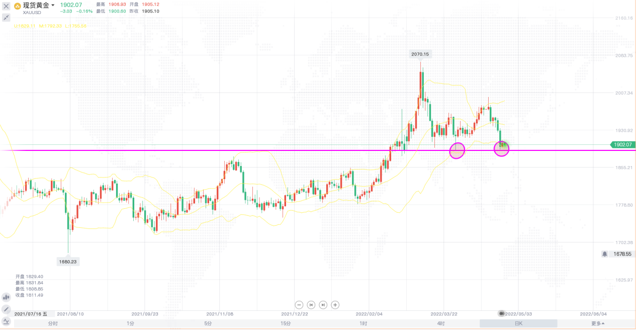 上周,黄金价格在试探2000美元关口未果后持续回落,主要因美联储再度向市场释放强硬的紧缩观点,市场对美联储加速加息的预期升温,这给了金价沉重的压力,而美元指数,从美联储主席鲍威尔上周的言论中获得支撑,刷新两年的高位。 美联储主席鲍威尔周四表示,美联储可能在下个月的政策会议上将联邦基金利率上调50个