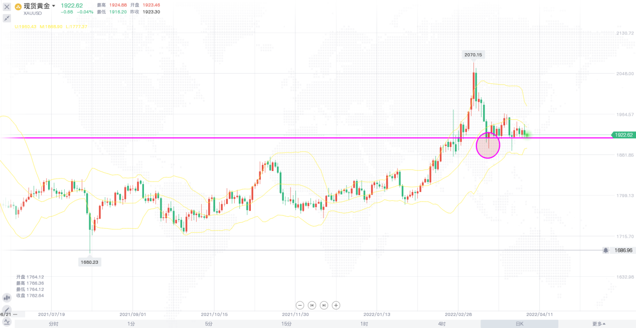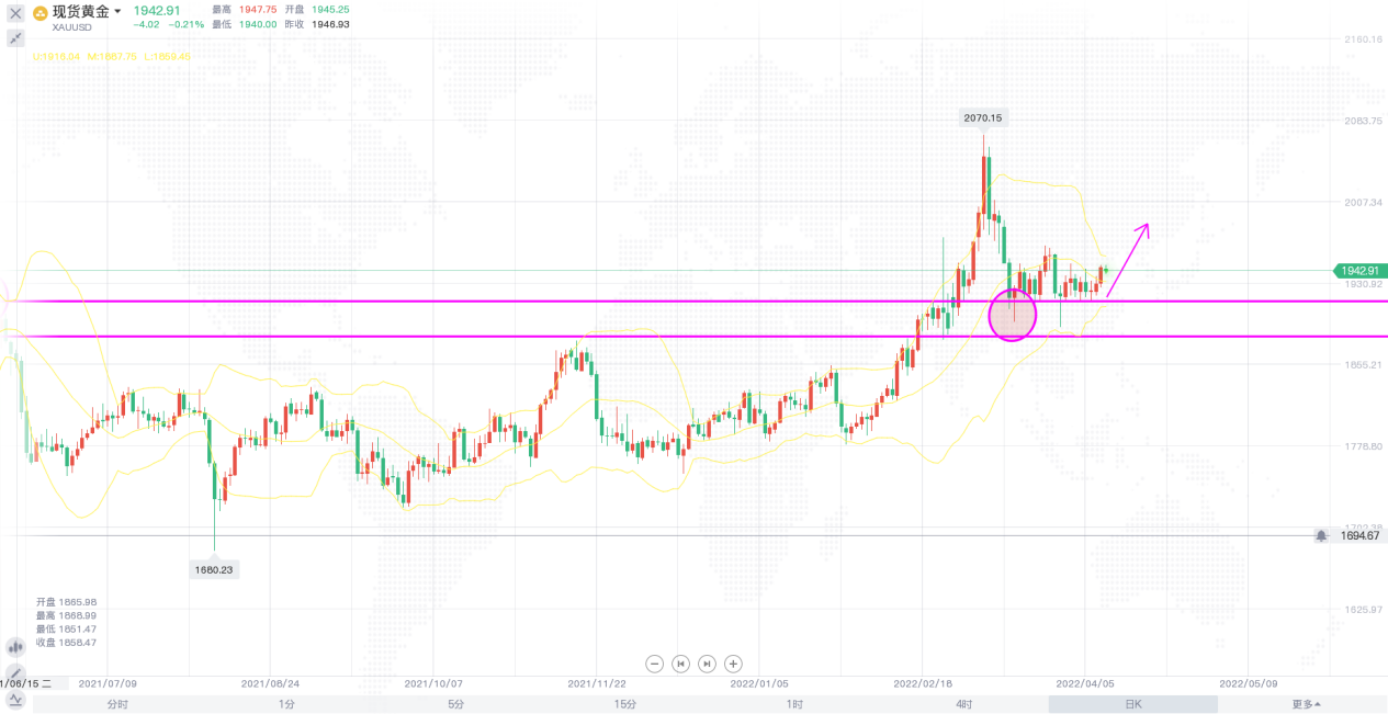 昨日,美元指数刷新近四周低点至97.68,美股下跌,因对俄乌和平谈判的乐观情绪消退,且投市场的注意力转向经济数据和利率预期,美盘时段,公布了市场关注的3月小非农AD就业数据,结果数据表现略超预期,数据公布后,黄金利空出尽,延续了日内的升势,价格一度涨1938美元附近,美元疲软和美债收益率小幅回落令金价得到提