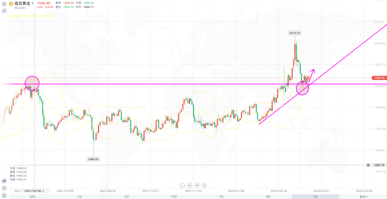 近几日,黄金基本处于持稳的态势,昨晚,美联储主席鲍威尔称必要时在5月会议上加息0.5个百分点,令多头略微有所顾忌,但因为地缘战事提振了对避险黄金的需求,而且大宗商品价格上涨正在帮助支撑黄金作为通胀对冲工具的吸引力,通胀预期在升高,经济可能会有所放缓;实际利率依然宽松,所以对黄金是个良好的环境。 市