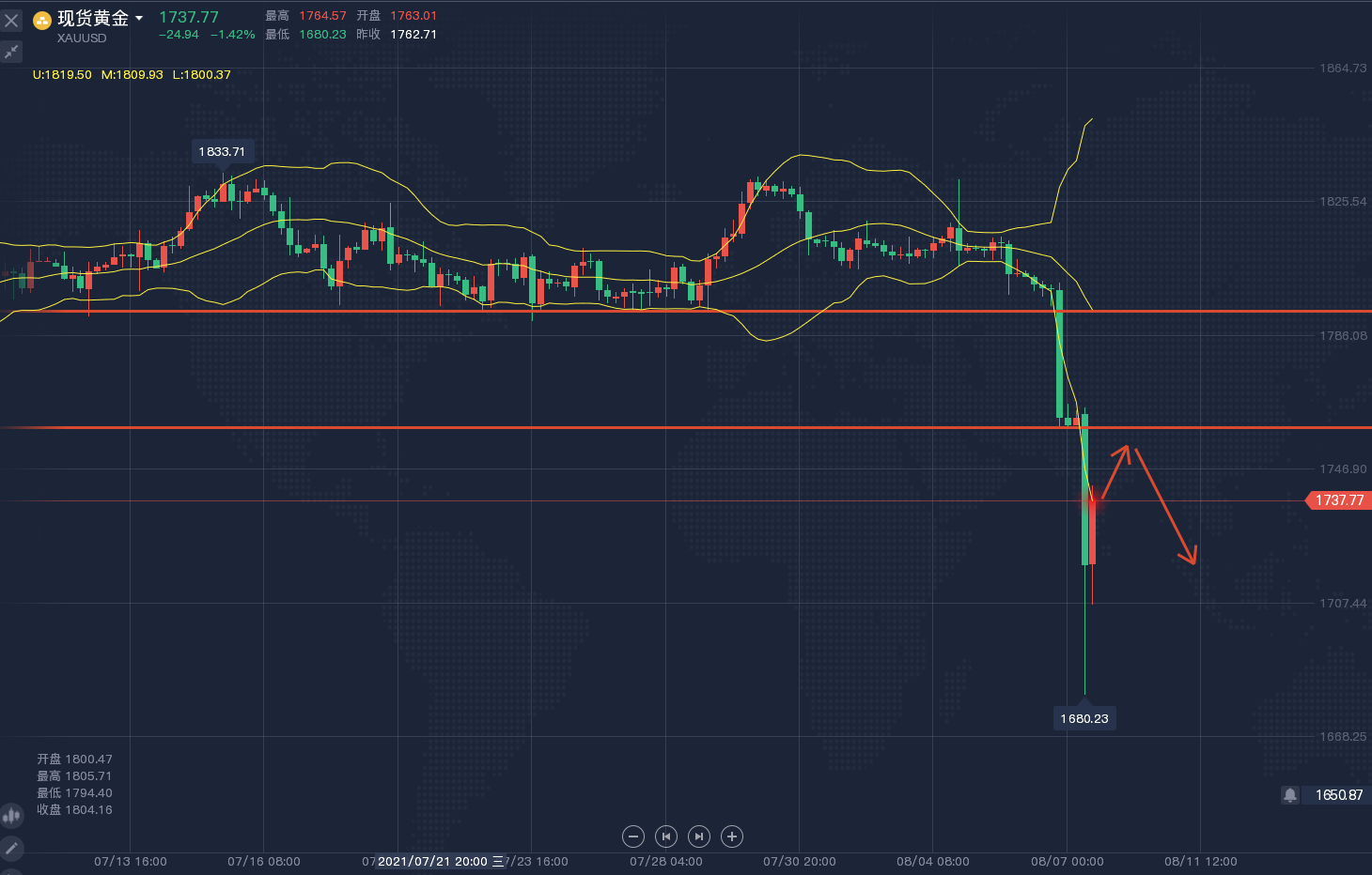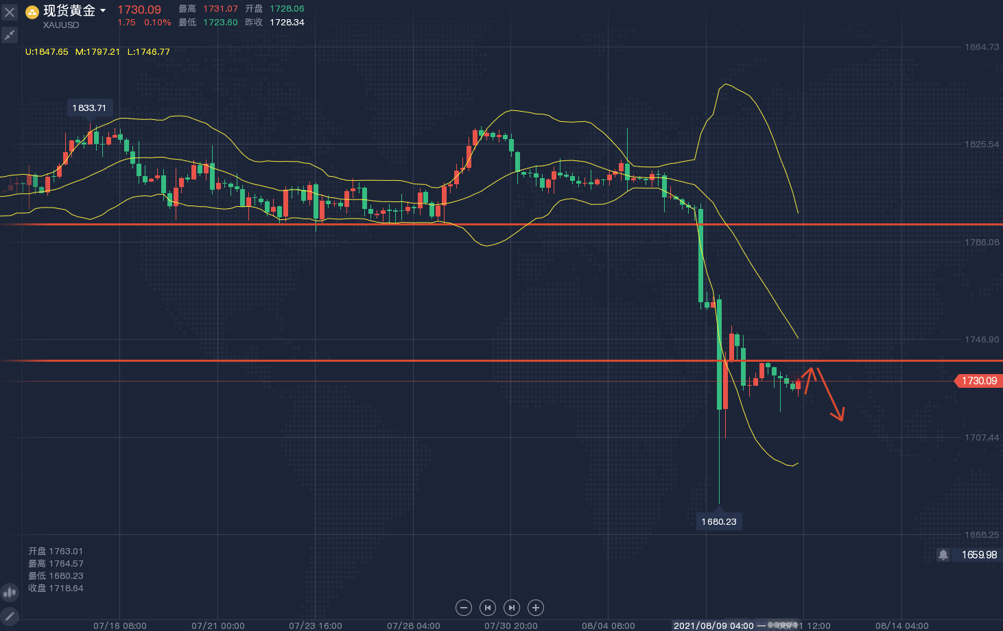 黄金昨日单边大涨,我们自凌晨美联储利率决议后1800开始干多,一路1818多,1823多单三连胜,今日还是继续干多看涨不变,1824上即可直接多! 黄金此前一直维持区间内震荡反复,而昨日直接大阳拉升突破,预示着新一波段上涨开启!横有多长竖有多高,此前震荡反复积蓄了太多的能量,一旦爆发,势不可挡,昨日的单边上涨也展
