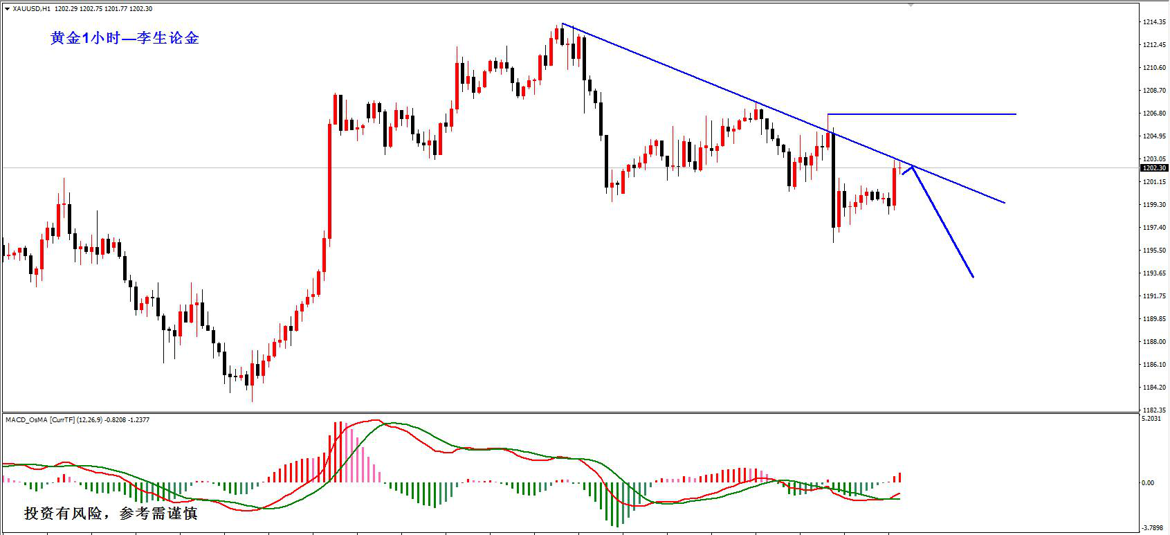 所有光鲜亮丽的背后,都曾熬过无数个不为人知的黑夜,交易的结果,从来都不是注定的,不曾经历失败不断总结,怎能体会成功的喜悦。抱最大的希望,尽最大的努力,做最坏的打算,交易就是如此,毋庸置疑,只要不断前行,好的事情一定会到来。 自从,上周触及1214之后,金价一直延续着震荡下行的走势,每一次反弹之后,