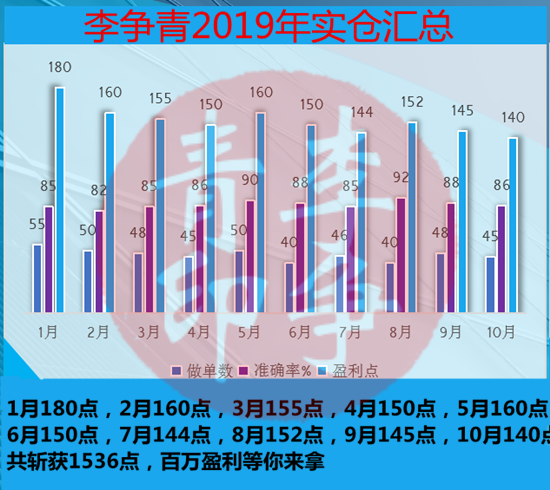 争青入行多年一直秉承着稳健操作的原则,宁愿错过一两单,也不要因为随意操作而使客户亏损。争青每天的策略都公开透明,拒绝马后炮!但是相比之下实时指导所给到的点位自然比策略要更精准些,有争青帮您盯盘,一天操作个两三单,稳健获利,就已足够。2019年争青实仓做单467单,准确率85%以上,共斩获1536点。