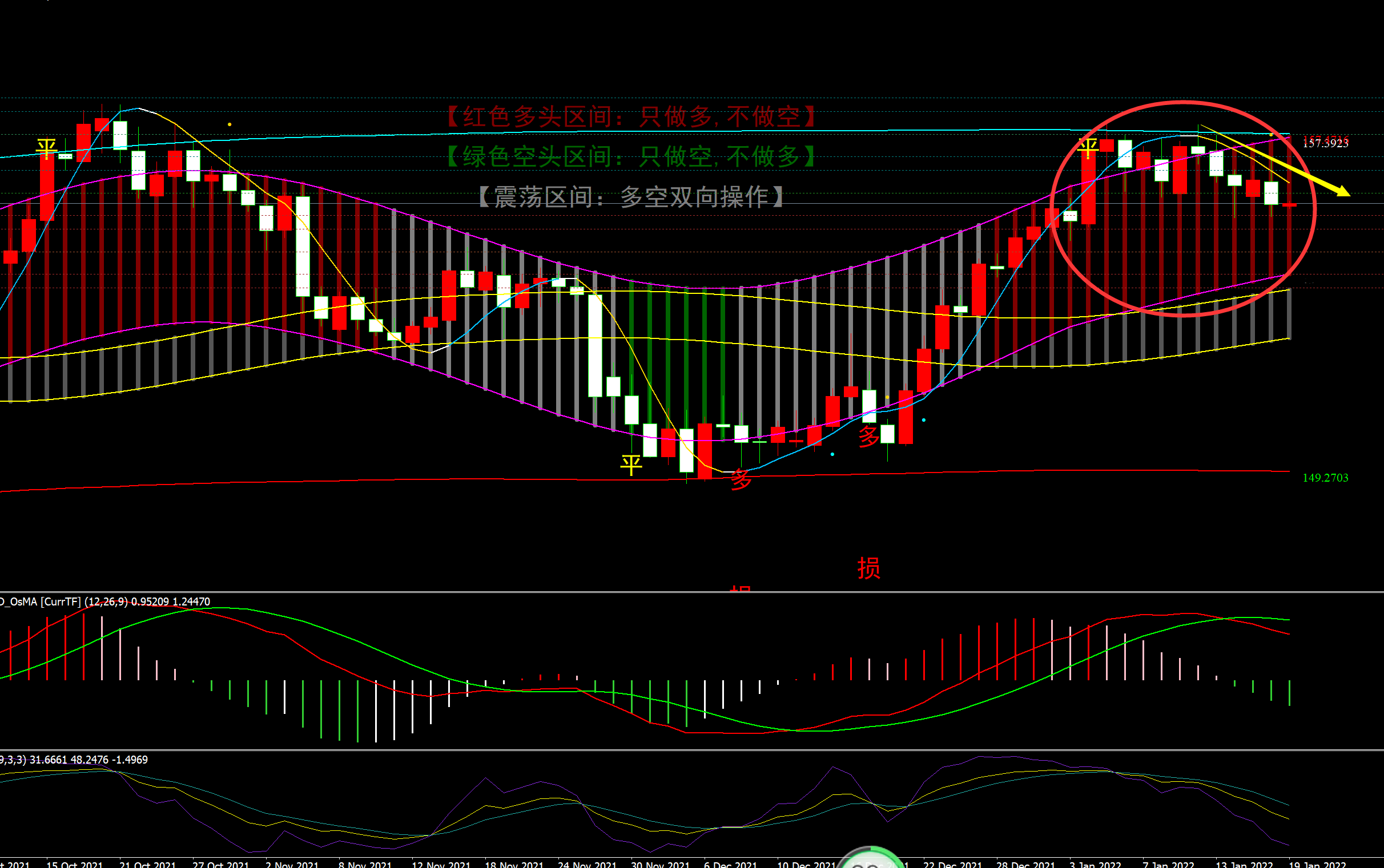 镑美:日图弱空初现,价格昨天已经收在上线下方,日内反抽1.3650一线空单入场。
