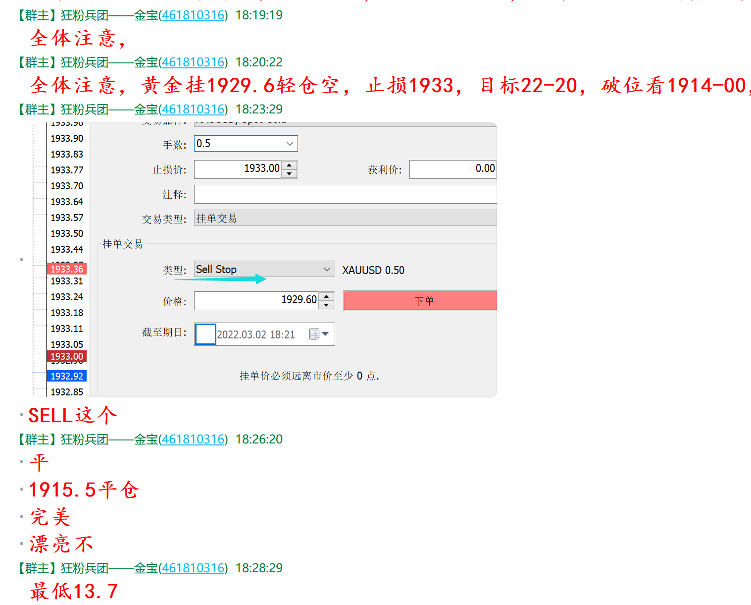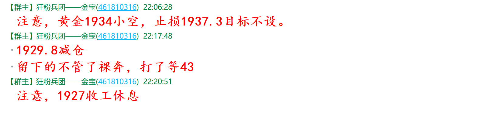 思路决定出路,这是宝哥一直强调的观点,因为如果出发点就错了,那么路就会走歪了,宝哥一直传达的理念就是,无论行情如何运行,绝对保持客观的分析,不掺杂任何的个人观念,才能够很好地理解投资市场的真谛,昨天至欧盘我们开启战斗在1947.3空,到1929.6挂的破位空及晚间1934的空都是完利利润,收益可观,特别是欧盘1932-36反复震荡之后,这或许让你焦急难耐,倘若你没有坚定的做空思路,又怎么能等到昨日的破位行情?没有耐心,即等不到鸟语也等不到花香,更等不到获利那一刻的到来。分析如同排兵布阵,交易就是战斗,思路清晰操作起来就会得心应手,其实,盈利本就很简单,没有必要复杂化,一套稳定盈利的系统,加上合格的操作心态,让盈利成为一种常态!