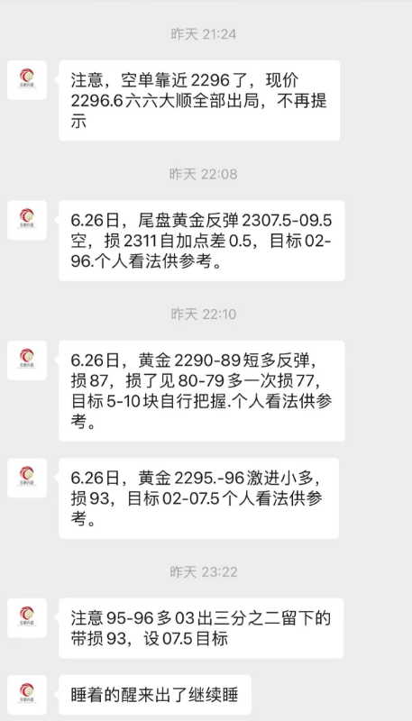 行情多空无对错,没有控制不了的风险,只有失控的人,很多人总想着对,却从不想错了该如何应对,殊不知,这个市场的风险就在于错了之后没有果断的处理方法,成败只在一念之间,一旦陷入抗单的魔咒中,就会无法自拔,而昨天黄金至早盘反弹多空点后一路下跌,虽然有反弹,但是最终下跌幅度从2324到2294,幅度达到了30美元,而宝哥相信绝对会有人在逆市不断的操作,在昨天下午的路演中说个反弹18空,就被人喷,一直在打击我做空,搞的好像说个空就刨了他家祖坟一样,也有一些朋友是赌着一口气,嘴上说着顺势,却做着逆市的操作,而我们昨天反弹按计划一路空到2296一线后,尾盘出现多周期反弹信号才2296上做了一波多到03,对于目前下跌行情,做空是没有任何异议的,宁愿做空损,也不做多损,顺势永远是对的,单边行情反弹就是做空的机会,顺势而为,取财有道。