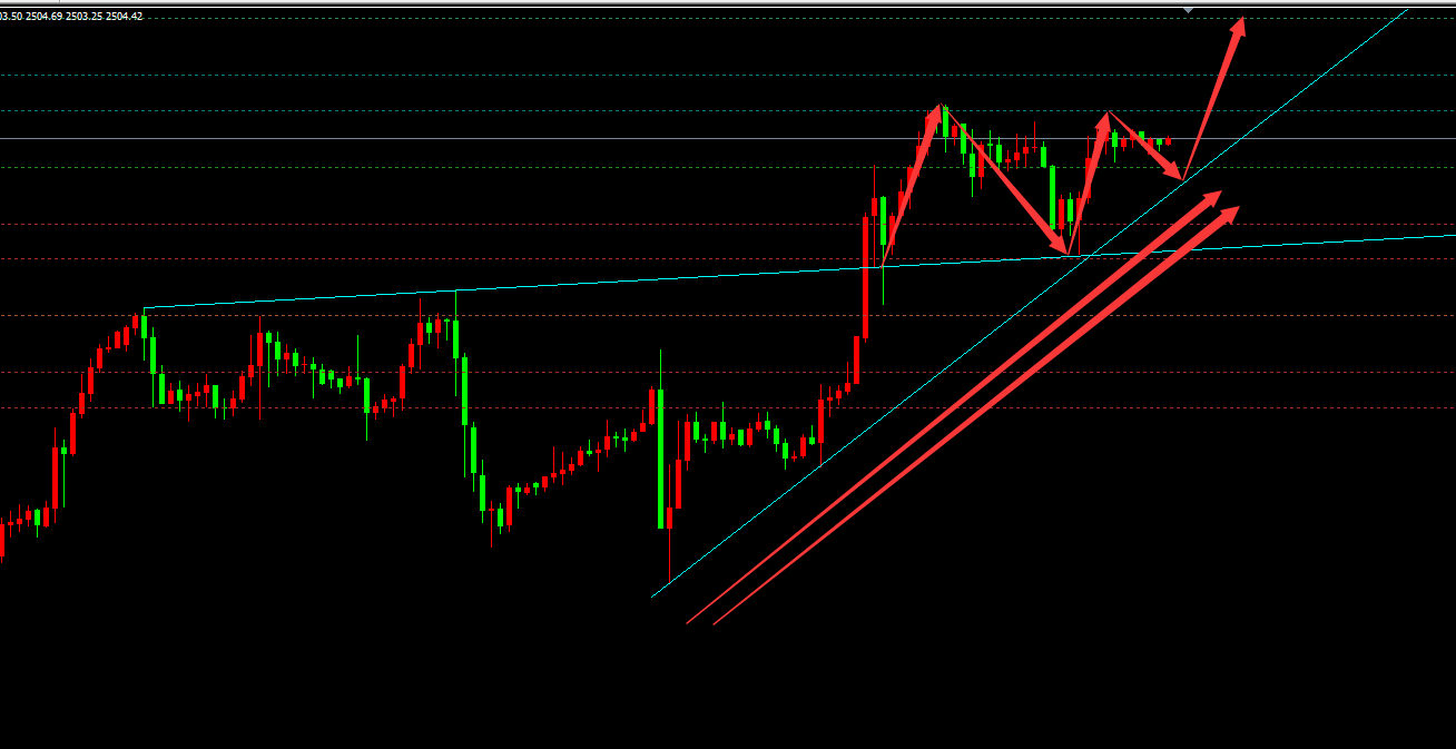 所以,综合来看,从黄金技术多周期层面的分析,金价有继续走高的支撑性,所以亚盘的操作思路上还是低多不变,点位上关注支撑2496-90支撑配合信号再做多布局,至于空等60和30分钏共振后再行入场,激进就是小时图上线空破顶出,看支撑位后再反手,具体操作以线下临盘提示为准。