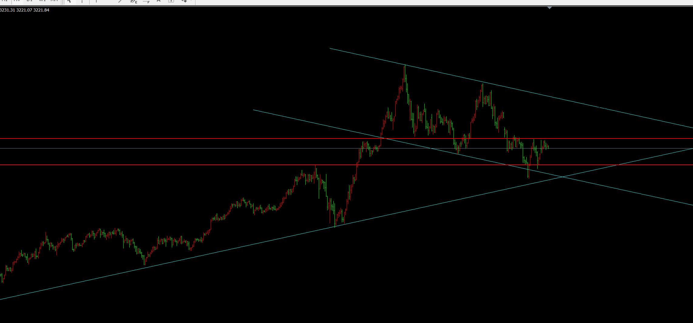 昨天先跌后涨,行情在欧盘出现反转,美盘3200跌一波后再次上扬,尾盘再是疯狂拉到40,下跌70反弹了120,波幅较大,回头来看,昨天欧盘3250空了一波到32,二次上扬到45正好是转势,当时等红灯提示平仓,这个初始多的信号就错过了,但是到晚间也只能空,我相信大都是这个相法,除了一些一路多一路损的还在坚持的,不过从32