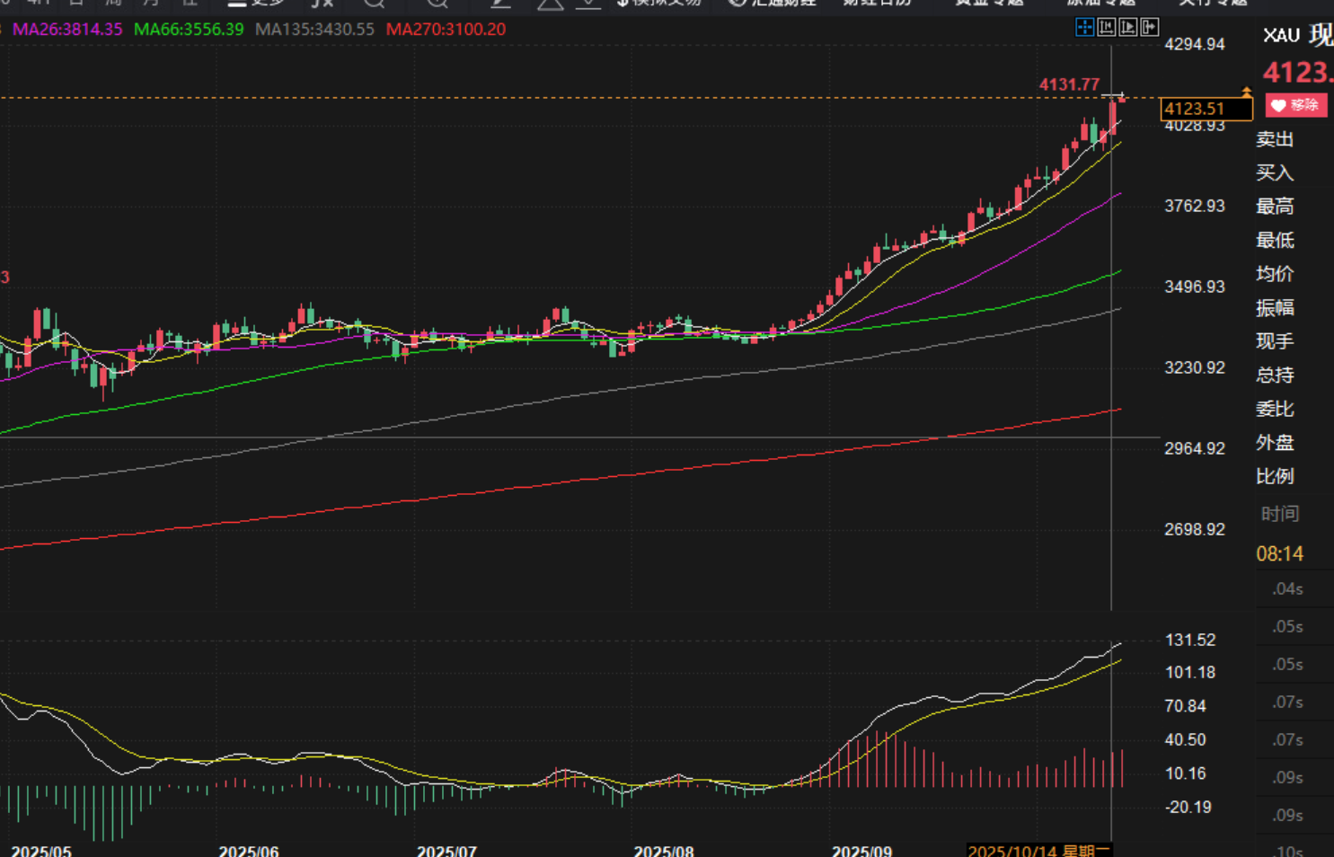 昨天黄金是新高不断,不过多头运行到现在真能追进去的这个确实佩服,一直提示回落多,但是没有回落涨了了还在自嗨这个就有点呵呵了,对于当下行情其实分析没有什么意义了,不过对于几个关键点还是希望与君分享一下,多不进去但是在关键点做空利润随便哪个也有20块,昨天早上的3920到3900,下午的3945到3920,晚上的58.5