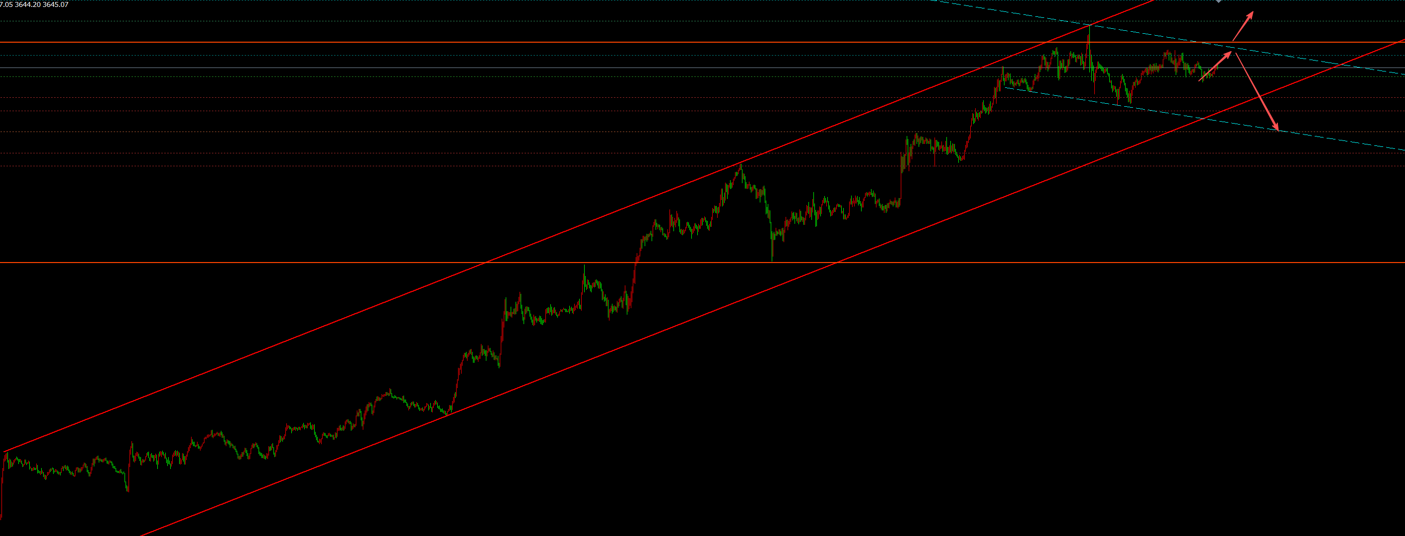 昨天行情如预期形成了先跌后涨,价格欧盘突破3400形成震荡,不过两次没有跌破均价线,这在晚间的路演也说了,正常上涨不会跌破93这里,所以在调整没破后在98上直接开了多也是完美到达了我们给出的目标位,从当下来看,连续四天全部是亚盘跌欧盘震荡美盘破高,今天周五预期也打破不了这个魔咒,同样今天的涨跌至少决定了