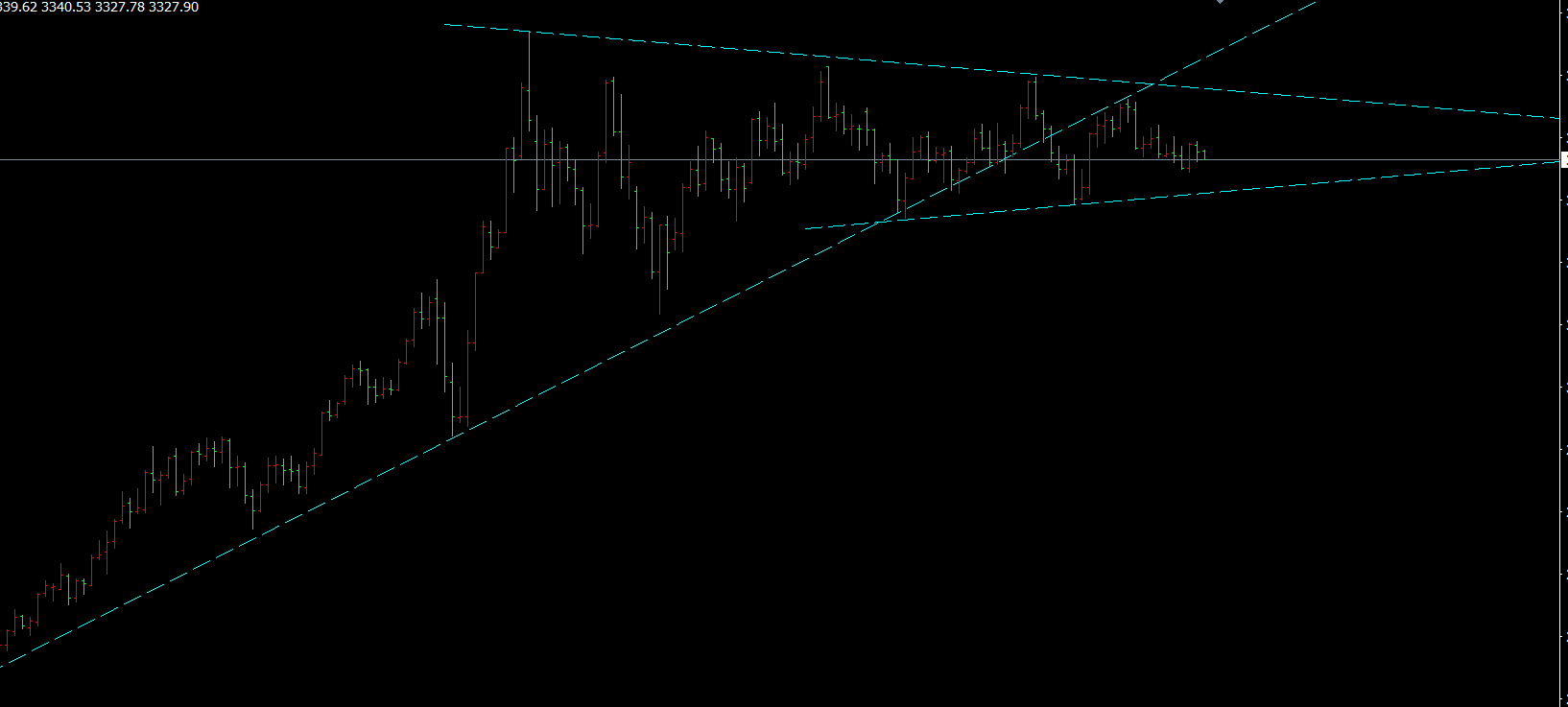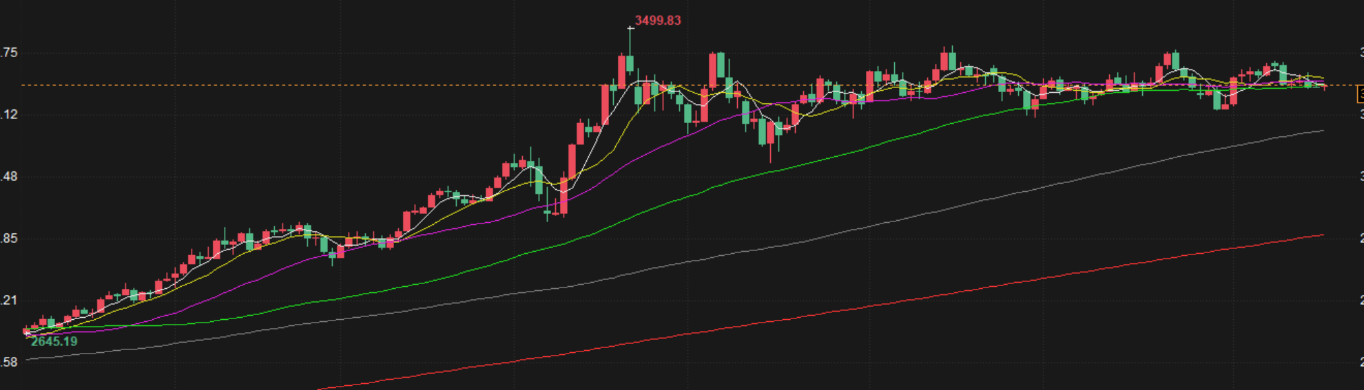 周一黄金多头回补后下跌,昨天按早评预期的反弹侧压力下行,而我们几个空单都是完美利润,对于今天来看,日图价格仍然运行于下降趋势线下方,短期压制在侧压力这里,后市有望进一步下行至日图下线3392一线,短期支撑于四小时下方加速线3300区域,考虑趋势为空,哪我们继续以反弹空不变,多放弃,现在考虑的是哪里空,结