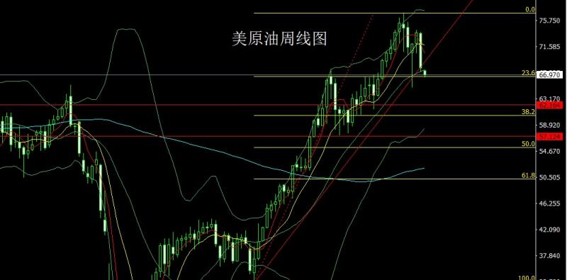 美原油市场上周开盘在73.741的位置后行情小幅拉升给出73.914的位置后行情快速回落,周线最低给到了67.549的位置后行情整理,周线最终收线在了68.117的位置后行情以一根下影线很长的大阴线收线,而这样的形态收尾后,本周行情依旧空,点位上,今日67.4空止损68下方目标看66.5和65.5-65